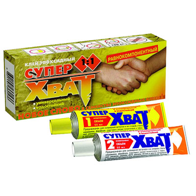 Клей предназначен для склеивания металлов и их сплавов, керамики, фарфора, стекла, древесины, пластика, декоративно-облицовочных плит в бытовых и промышленных целях. Клей "Супер-Хват" обеспечивает высокую прочность склеивания за счет отвердевания эпоксидной смолы при смешении обоих компонентов.